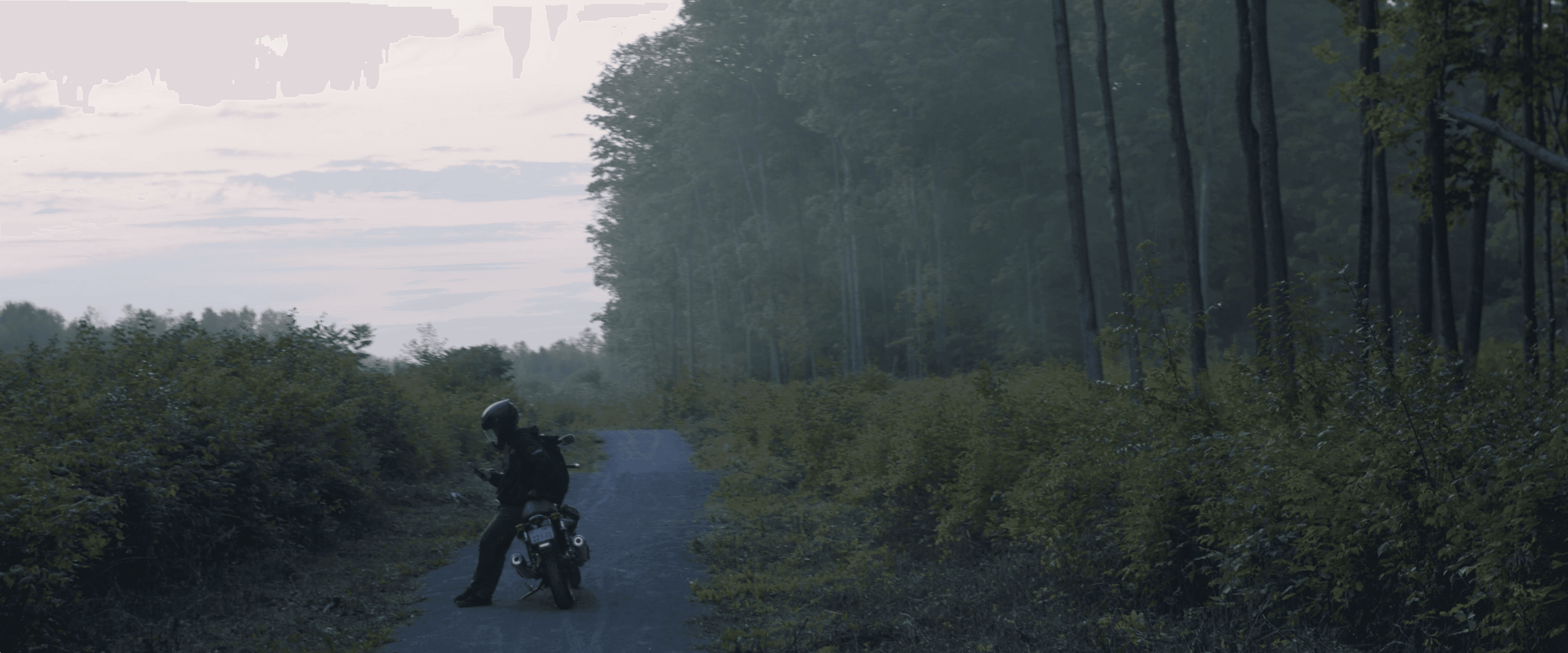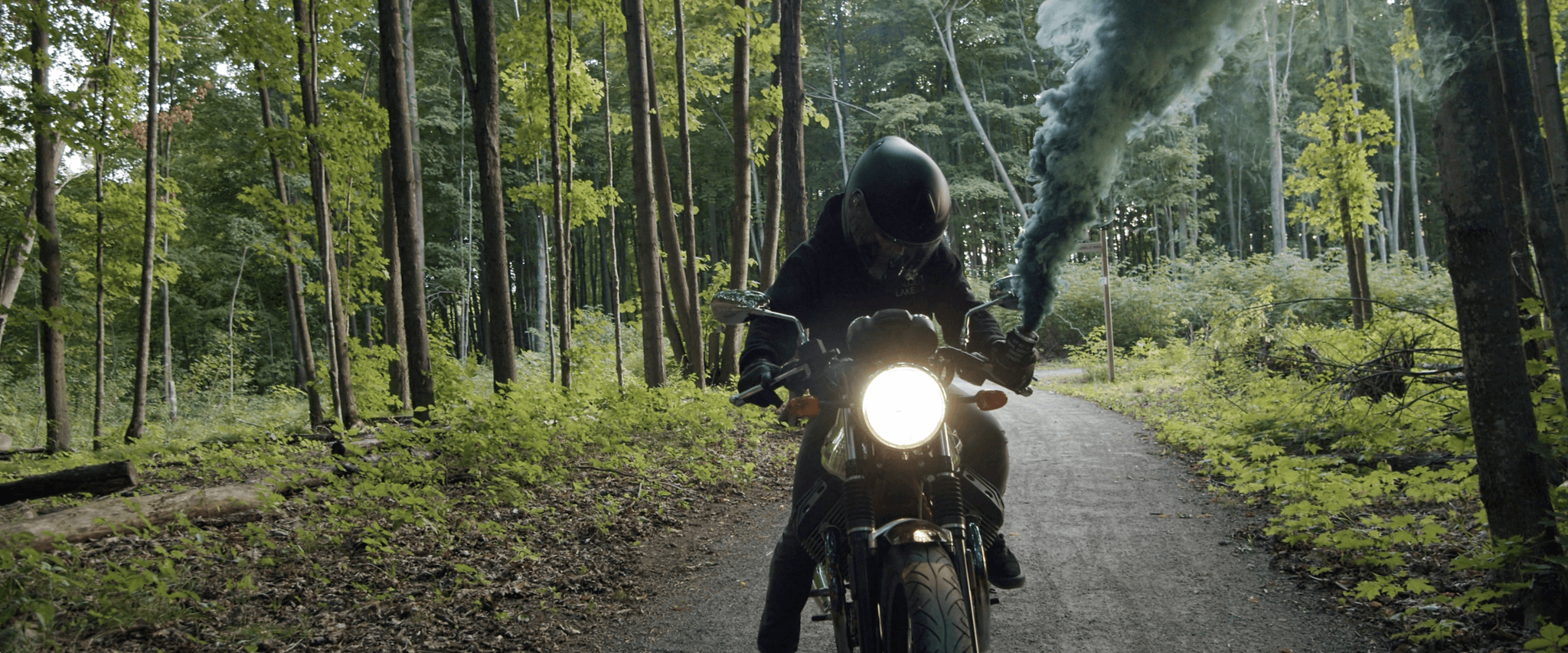 The final film not only satisfies my original vision, but it proves that a simple concept executed effectively can captivate audiences. The bold purple and blue smoke surrounding the motorcyclist entirely reshapes the quiet forest environment, resulting in strong visual and story contrast. This impromptu film remains a project I continue to look back on with kind eyes.